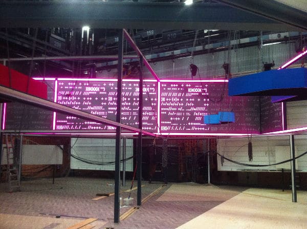Ook hebben we in onze werkplaats 12 LED controller kasten voorbereid met voedingen en ruim 60 stuks door ons zelf ontwikkelde ALC-14 LED Controllers. Op locatie hebben we in 12 dagen tijd met nauwe samenwerking met de decorbouwer nog zo’n 4,5 kilometer aan kabel getrokken in en door het decor en vervolgens de LED verbonden met de controllers en geadresseerd naar wens van de lichtoperator. In het decor zijn ook nog 96 plexiglazen panelen verwerkt met RGB LED’s die door een derde partij is aangeleverd. Yellowspot zorgde voor de bekabeling hiervan, wat nog een uitdaging was omdat deze panelen verplaatsbaar moest zijn. Ook deze LED panelen draaien op onze LED controllers.