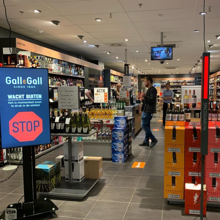 Is er voldoende ruimte in de winkel? De SpaceGuard staat op groen en ook op het display staat aangegeven dat u de winkel binnen kunt komen. Is het maximaal aantal bezoekers bereikt? Dan staat de SpaceGuard op rood en zal op het display ook te zien zijn dat de bezoeker even moet wachten.