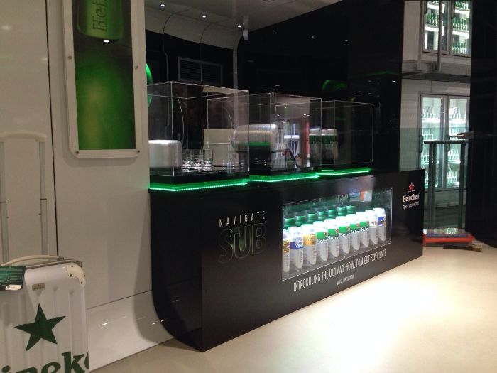Yellowspot leverde de groene LED verlichting voor de display om de nieuwe thuistap van Heineken, The Sub, te promoten.
