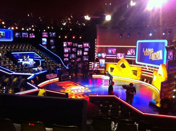 Het decor van deze spelshow “Lang leve de TV” is door Yellowspot voorzien van ruim 400 meter YS RGB ledverlichting en 36 YSpixel ledpanelen.