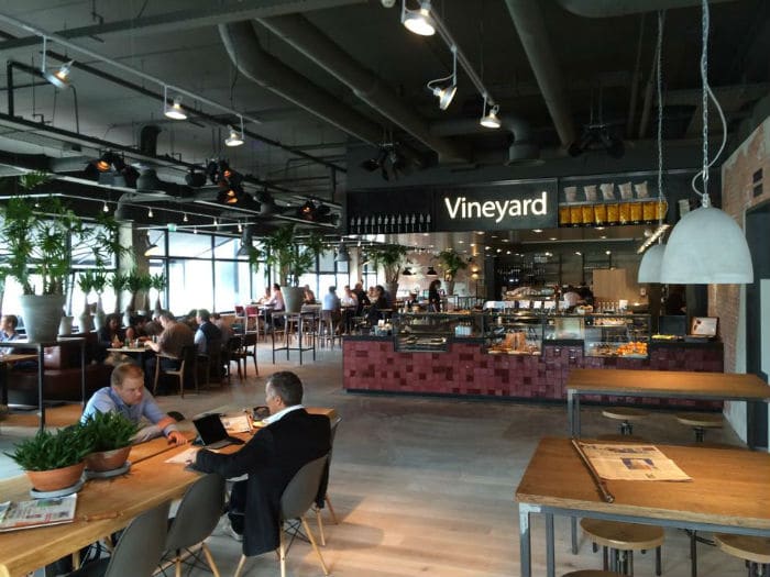 Vineyard food & drinks is een multifunctioneel restaurant dat vanaf 7 uur geopend is voor ontbijt, lunch, diner en om te werken.